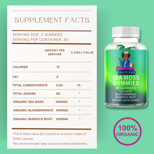 Because of the soothing effects of sea moss on the mucous membranes in the body, it works as an amazing digestive aid. It coats the stomach and helps to heal the body of ulcers. In addition, it helps to alleviate acid reflux by providing probiotics for improved gut health. Sea moss, bladderwrack, and burdock root are also packed with fiber that regulates bowel movement and alleviates gas.